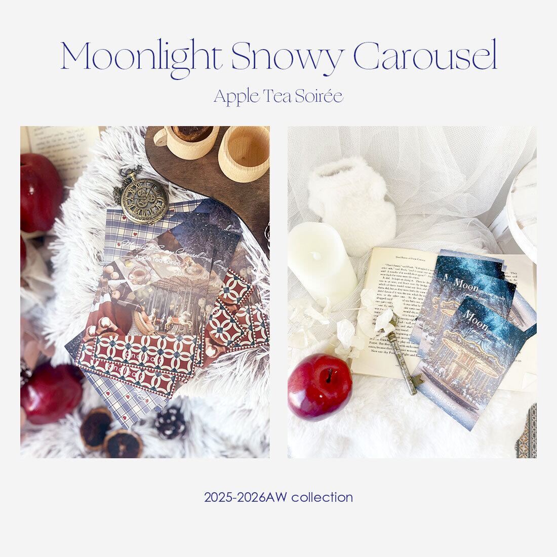 今季テーマ 「Moonlight Snowy Carousel — Apple Tea Soirée —」 の情景をまとわせた生地でご用意しました。