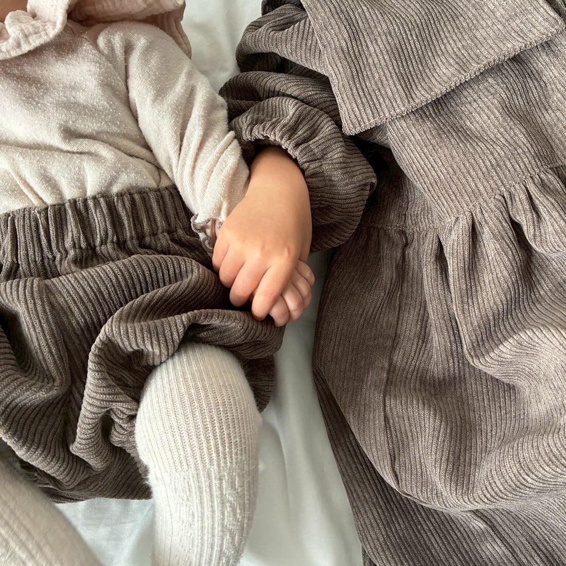 同じ生地を使用したアイテムも展開しており、おそろいで楽しめる秋冬の主役ワンピースです。