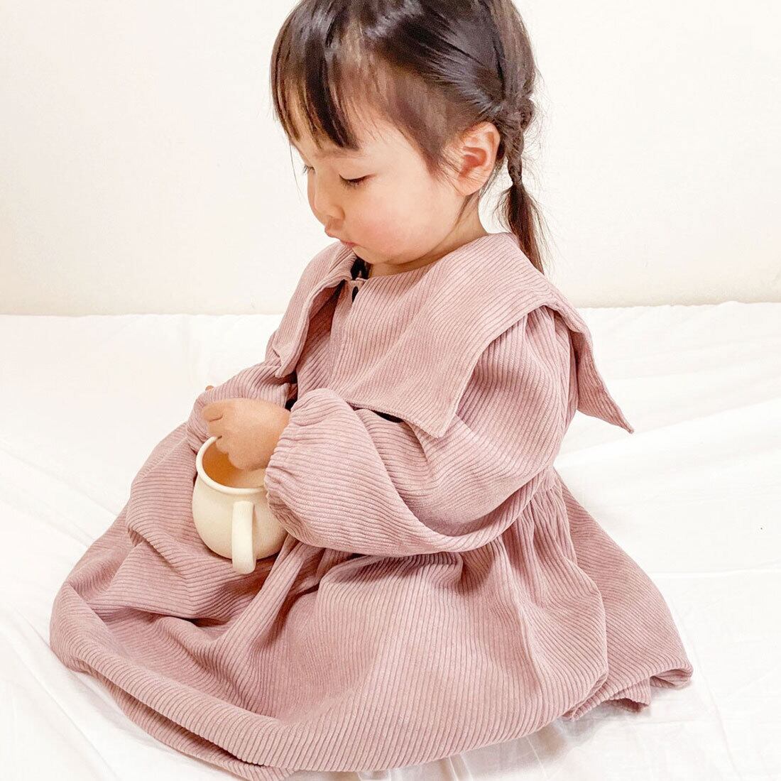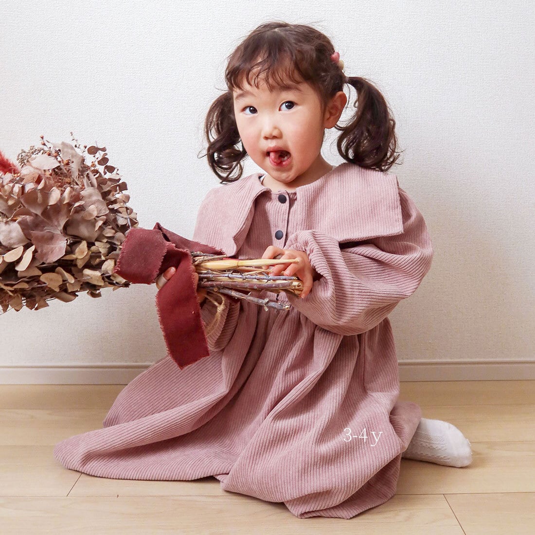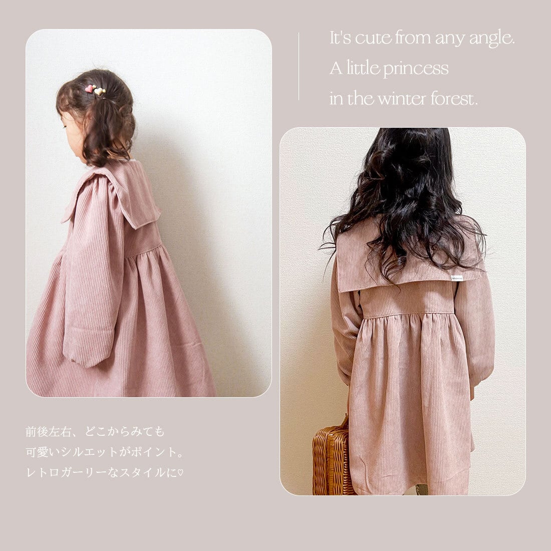 7W corduroy Meadow Dress|コーデュロイ Meadowワンピース|ベビー キッズ 子供 ワンピ つけ襟 長袖 お祝い 秋冬 出産祝