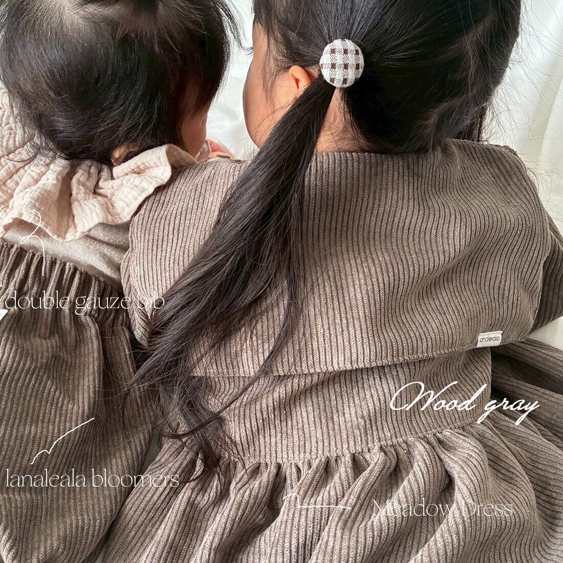 ふっくらとしたボリュームシルエットが目を惹くMeadow Dress。大きなセーラーカラーが小さな背中を包み込み、後ろ姿まで絵になるデザインに。
