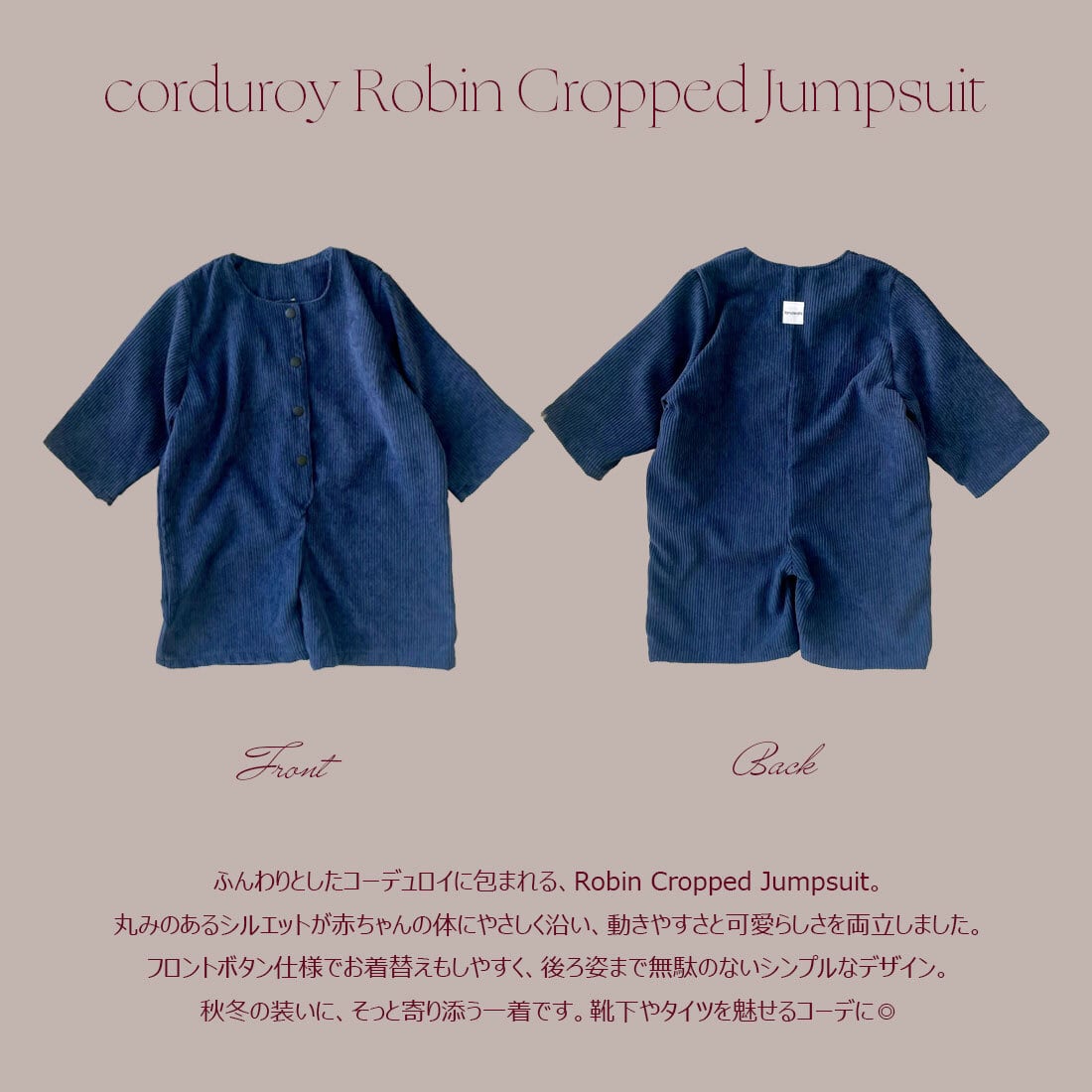 7W corduroy Robin Cropped Jumpsuit|コーデュロイRobinジャンプスーツ|ベビー キッズ 子供 オールインワン サロペット つなぎ パンツ 長袖 お祝い 秋冬 出産祝