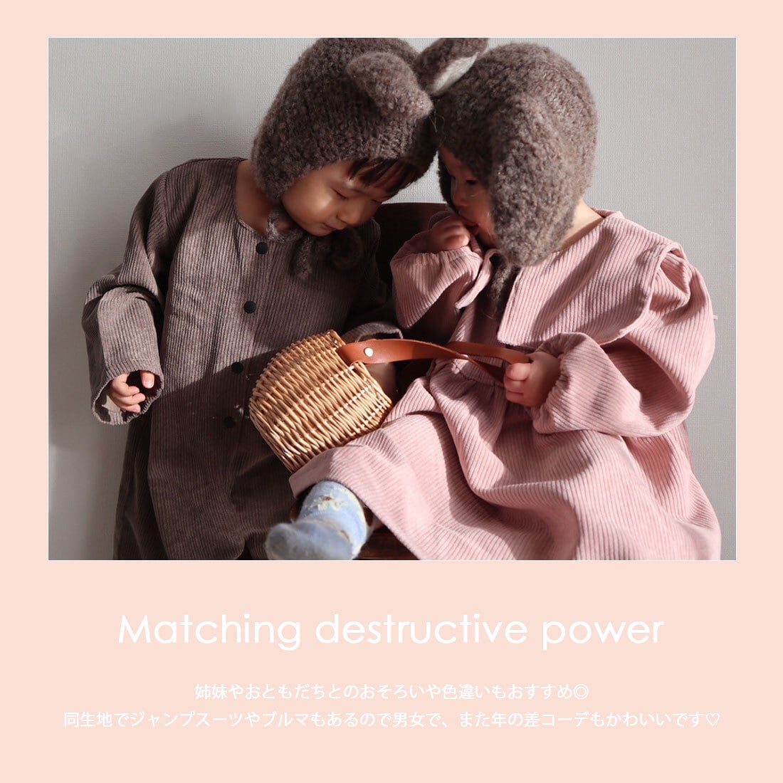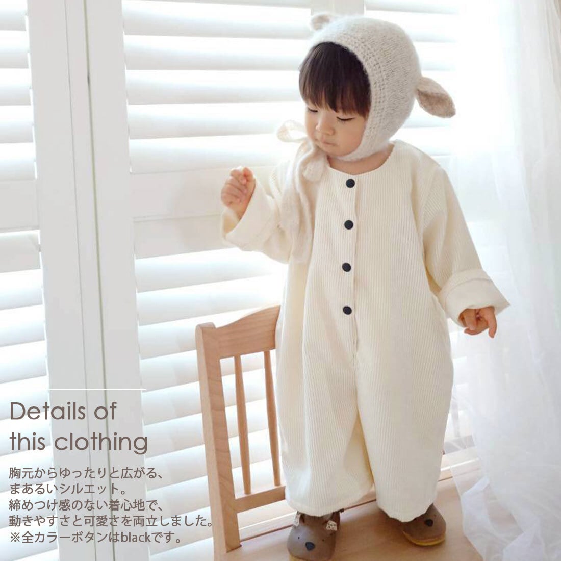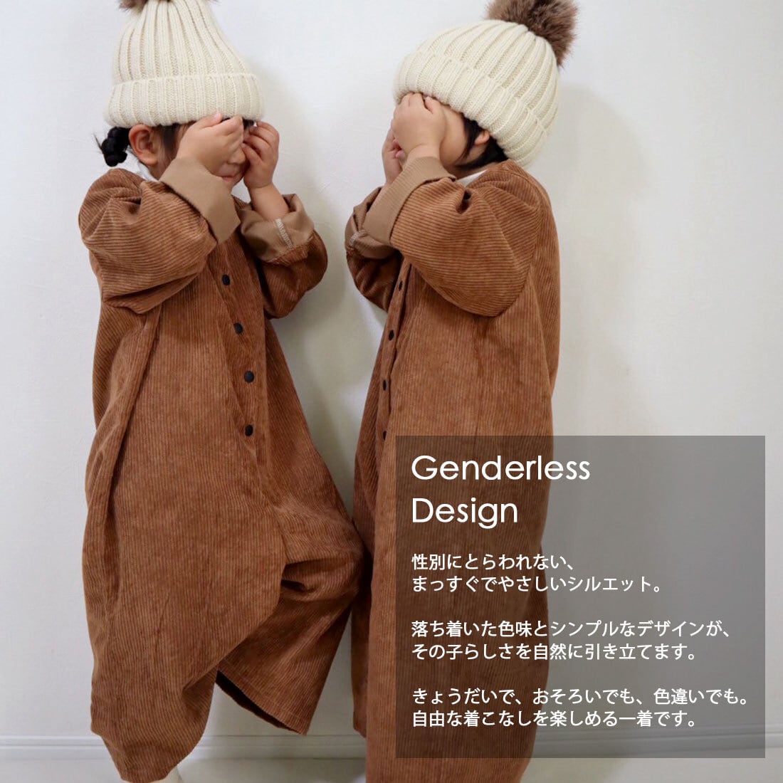 ジェンダーレスで着用できるのも嬉しいポイント。きょうだいや親戚、お友達とのおそろいはもちろん、おさがりもしやすいアイテム。