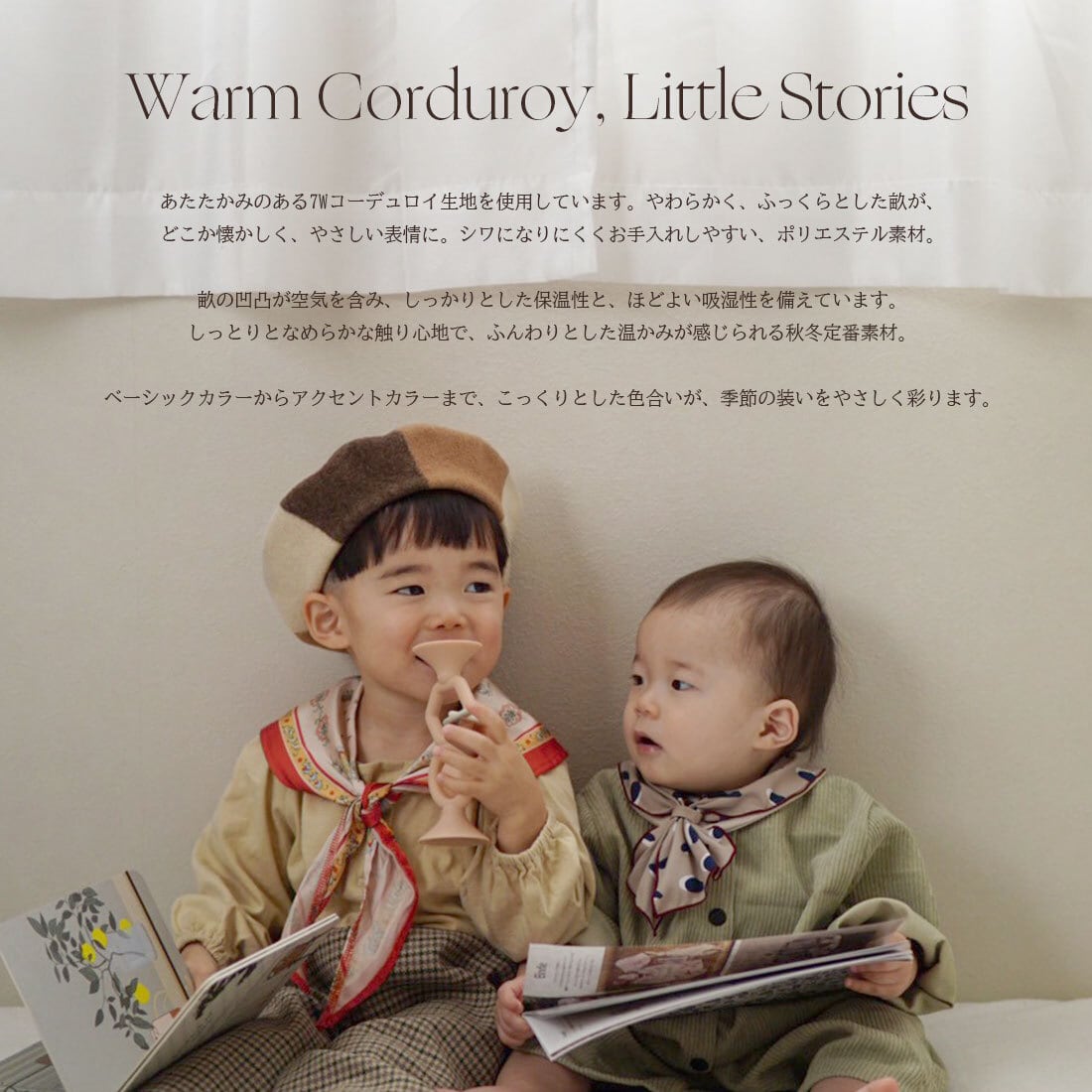 程よい厚みと柔らかさを兼ね備えた7wコーデュロイ。細すぎず太すぎない畝が、ナチュラルで上品な印象を与えてくれます。