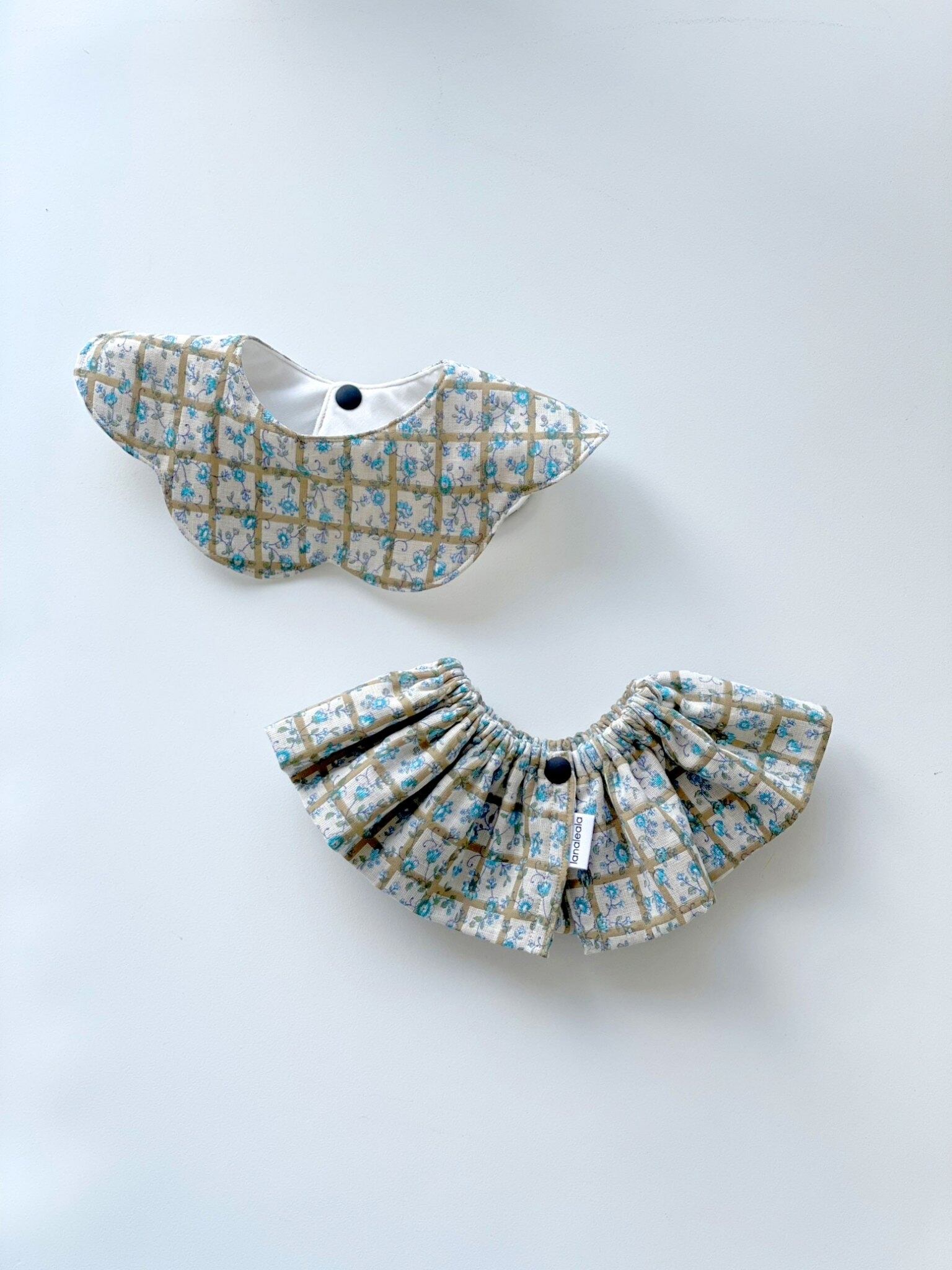 選べる2type|windowpane flower bib |ウインドーペンフラワーガーゼビブ|つけ襟.ベビー.キッズ.フリル.ビブ.お花スタイ.チェック.ガーゼ